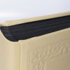 Album wykonany ze skóry naturalnej przez włoskich introligatorów. Oprawa w kolorze kremowym zdobiona charakterystycznym ornamentem. Widoczna jest wyraźnie faktura skóry. Album zawiera 50 kart w kolorze czarnym przekładanych białym pergaminem.