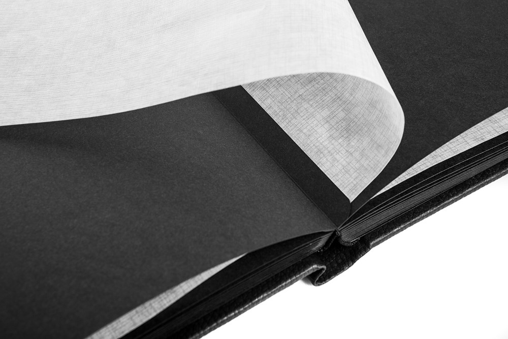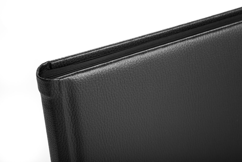 Ten piekny album zawdzięcza swój jakże elegancki wygląd mistrzom introligatorstwa. Prosta estetyczna okładka z czarnej matowej ekoskóry nie posiada żadnych zdobień. Fotografie,które można umieścić na 20 kartach koloru czarnego oddzielonych od siebie pergaminem nabiorą nowego blasku i zachowają kolory na długie lata.