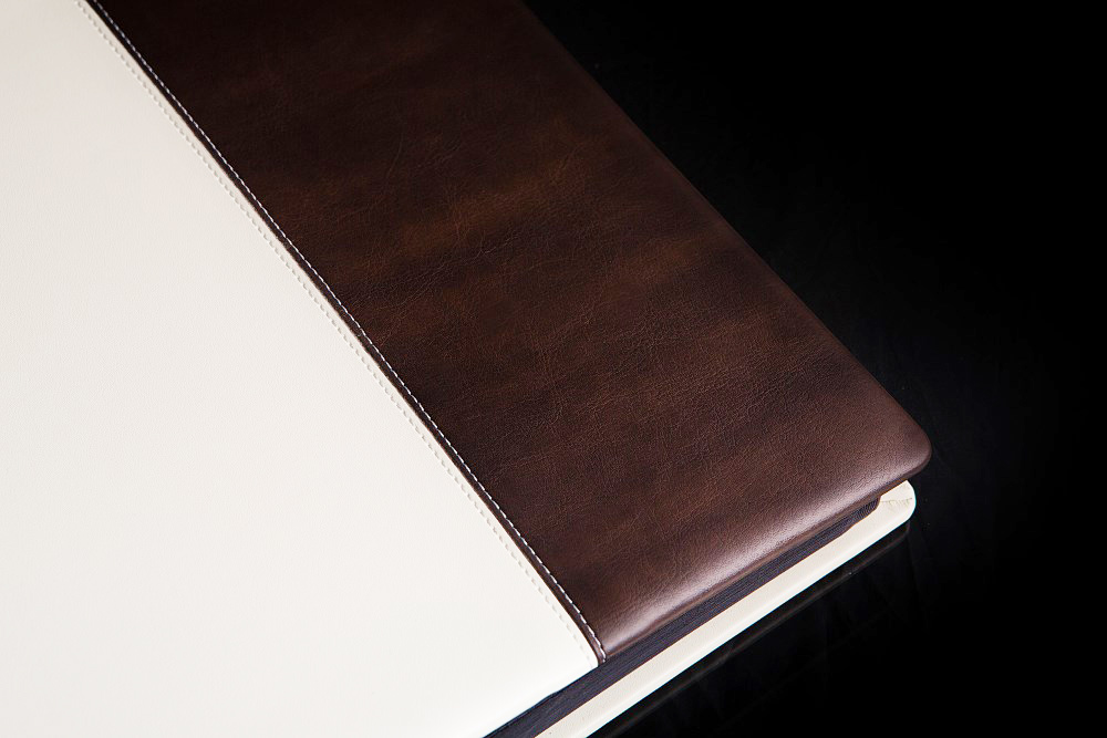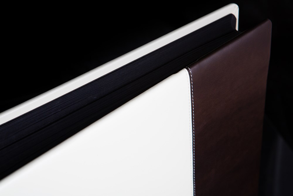 Ten piekny album zawdzięcza swój jakże elegancki wygląd mistrzom introligatorstwa. Zawarty w nim jest tradycyjny styl i elegancja co sprawia, że nie da się oderwać od niego wzroku. Dodatkowego prestiżu dodaje mu ciekawie wykonana okładka z połaczonych ze sobą pieknym przeszyciem ekoskór w kolorze białym i cieniowanego brązu . Fotografie ,które można umieścić na 50 czarnych kartach oddzielonych od siebie pergaminem nabiorą nowego blasku i zachowają kolory na długie lata. Jako opcje dodatkową możecie Państwo wybrać opakowanie ekskluzywne.