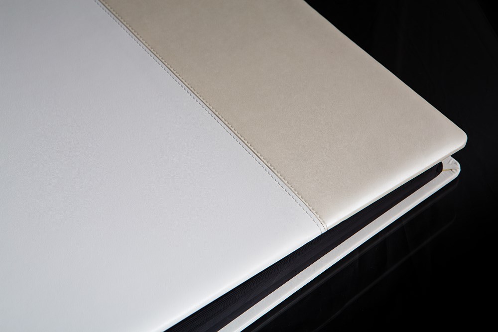 Ten piekny album zawdzięcza swój jakże elegancki wygląd mistrzom introligatorstwa. Zawarty w nim jest tradycyjny styl i elegancja co sprawia, że nie da się oderwać od niego wzroku. Dodatkowego prestiżu dodaje mu ciekawie wykonana okładka z połaczonych ze sobą pieknym przeszyciem ekoskór w kolorze białym i perłowym . Fotografie ,które można umieścić na 50 czarnych kartach oddzielonych od siebie pergaminem nabiorą nowego blasku i zachowają kolory na długie lata. Jako opcje dodatkową możecie Państwo wybrać opakowanie ekskluzywne.