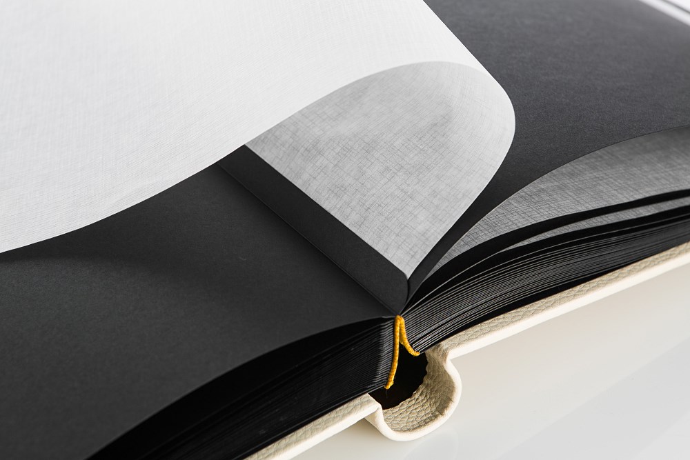 Ten piekny album zawdzięcza swój jakże elegancki wygląd mistrzom introligatorstwa. Zawarty w nim jest tradycyjny styl i elegancja co sprawia, że nie da się oderwać od niego wzroku. Dodatkowego prestiżu dodaje mu okładka w kolorze kremowo-czarnym z pięknie wykonanym przeszyciem . Fotografie ,które można umieścić na 50 czarnych kartach oddzielonych od siebie pergaminem nabiorą nowego blasku i zachowają kolory na długie lata. Jako opcje dodatkową możecie Państwo wybrać opakowanie ekskluzywne.