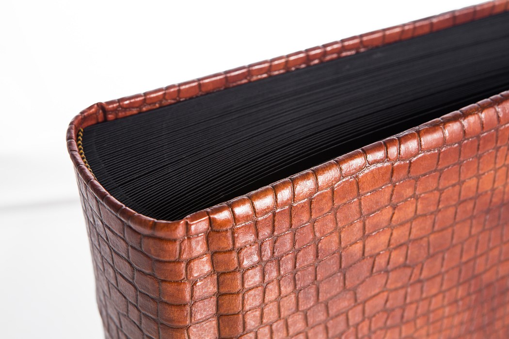 Ten piekny album zawdzięcza swój jakże elegancki wygląd mistrzom introligatorstwa. Zawarty w nim jest tradycyjny styl i elegancja co sprawia, że nie da się oderwać od niego wzroku. Dodatkowego prestiżu dodaje mu okładka wykonana z ekoskóry imitującej skórę krokodyla. Fotografie ,które można umieścić na 50 czarnych kartach oddzielonych od siebie pergaminem nabiorą nowego blasku i zachowają kolory na długie lata. Jako opcje dodatkową możecie Państwo wybrać opakowanie ekskluzywne.
