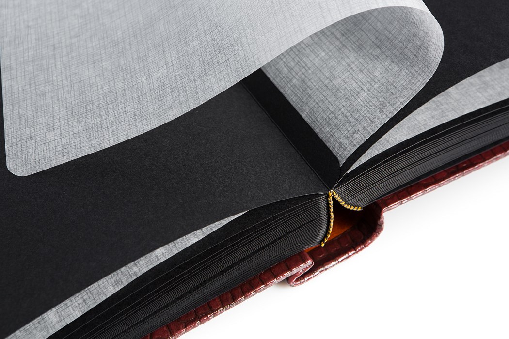 Ten piekny album zawdzięcza swój jakże elegancki wygląd mistrzom introligatorstwa. Zawarty w nim jest tradycyjny styl i elegancja co sprawia, że nie da się oderwać od niego wzroku. Dodatkowego prestiżu dodaje mu okładka wykonana z ekoskóry imitującej skórę krokodyla. Fotografie ,które można umieścić na 50 czarnych kartach oddzielonych od siebie pergaminem nabiorą nowego blasku i zachowają kolory na długie lata. Jako opcje dodatkową możecie Państwo wybrać opakowanie ekskluzywnej.