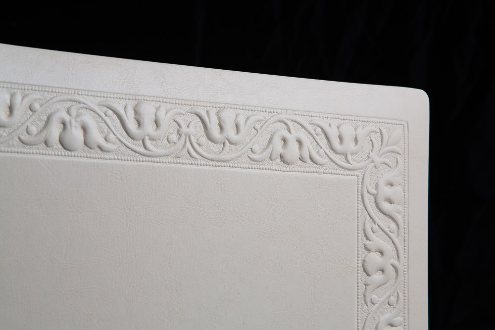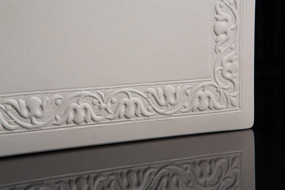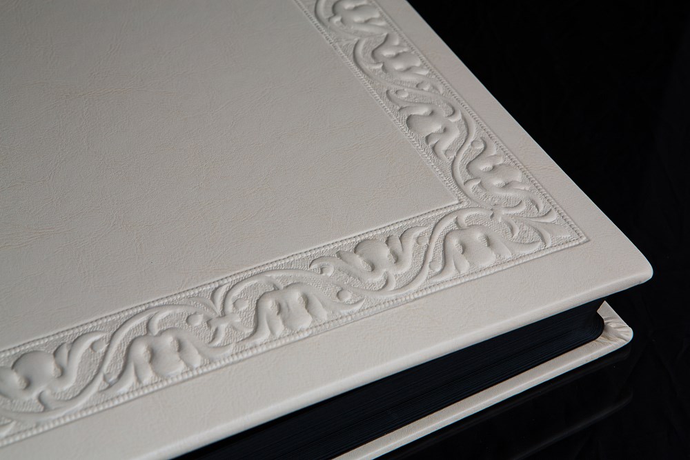 Ten piękny włoski album wykonany z ekoskóry swoją elegancją zachwyci wszystkich oglądających i będzie doskonałym preludium do fotografii zawartych na 50 czarnych kartach przekładanych pergaminem. Dzięki specjalnemu wykonaniu tegoż papieru zdjęcia nie niszczeją mimo upływu lat. Efekt dopełnia piękne tłoczenie na eleganckiej oprawie koloru kremowego.