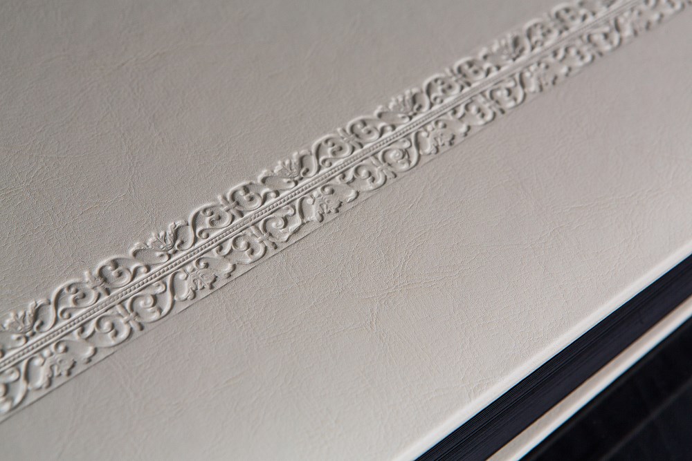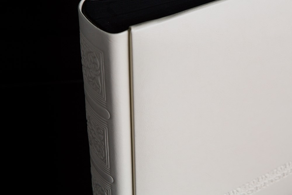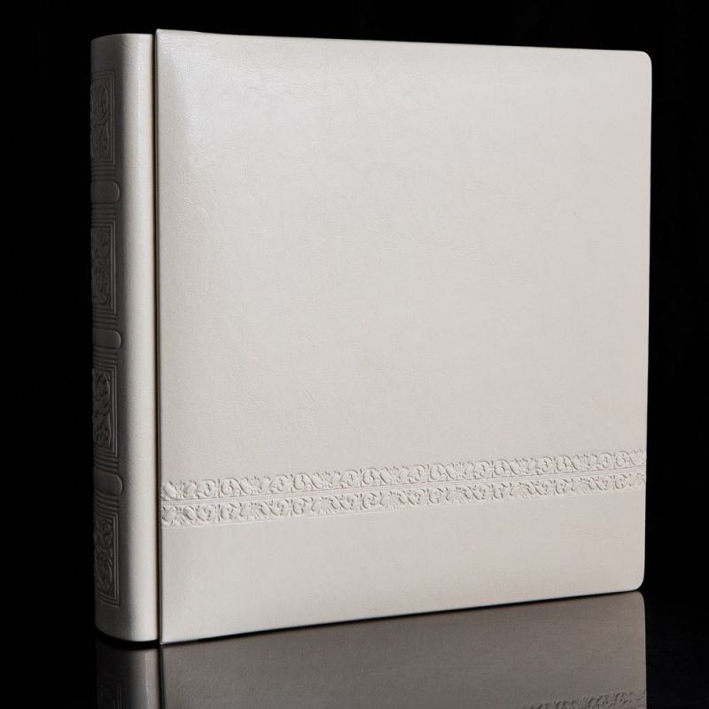 Elegancki a zarazem prosty. Tak właśnie można określić ten niezwykłej urody tradycyjny włoski album wykonany z ekoskóry w kolorze ecru. Dodatkowe tłoczenia podkreślają jego śródziemnomorski charakter. Poręczny format 31x31cm oraz bogate wnętrze zawierające 50 czarnych kart przekładanych pergaminem uczyni go nieodłącznym elementem każdej biblioteczki. Przechowywane w nim fotografie zachowają swój blask i długo będą cieszyć Państwa żywymi kolorami.
