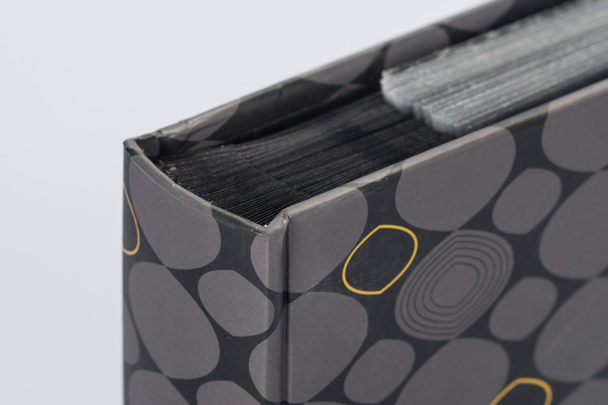 Album w twardej ciemnoszarej oprawie z czarnymi kartami. Pomieścić możemy w nim 200 zdjęć formatu 10x15 cm w specjalnych kieszonkach. Na każdej stronie obok zdjęcia znajduje się miejsce na opis.