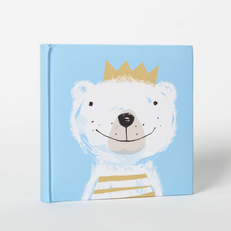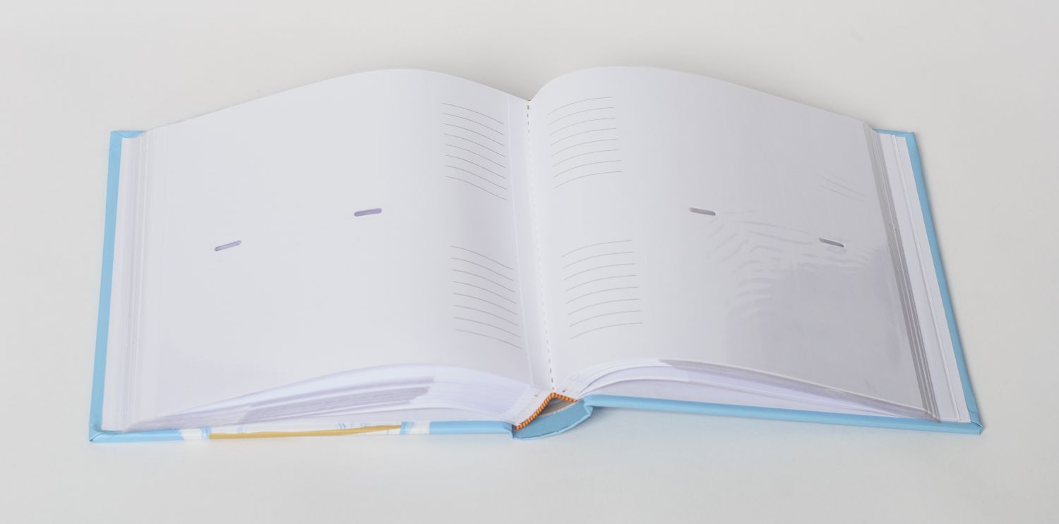 Album kieszeniowy w twardej oprawie z okładką oklejoną ozdobnym papierem. Na przodzie znajduje się wizerunek ręcznie malowanego misia, a z tyłu okładka jest jednolicie niebieska. Wewnątrz możemy umieścić 200 zdjęć formatu 10x15 cm w specjalnych kieszonkach, a obok zdjęcia jest miejsce na własny opis.