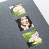 Ten piękny tradycyjny album posiada 50 kart w koloru czarnego a wszystko zamknięte w starannie wykonanej sztywnej płociennej okładce w kolorze grafitowym. Kolor tego albumu na pewno przypadnie do gustu niejednej osobie i będzie świetną ozdobą dla wypełnionych nim fotografii. Album posiada na przedniej cześci trzy okienka w których możemy umieścić swoje fotografię.
