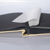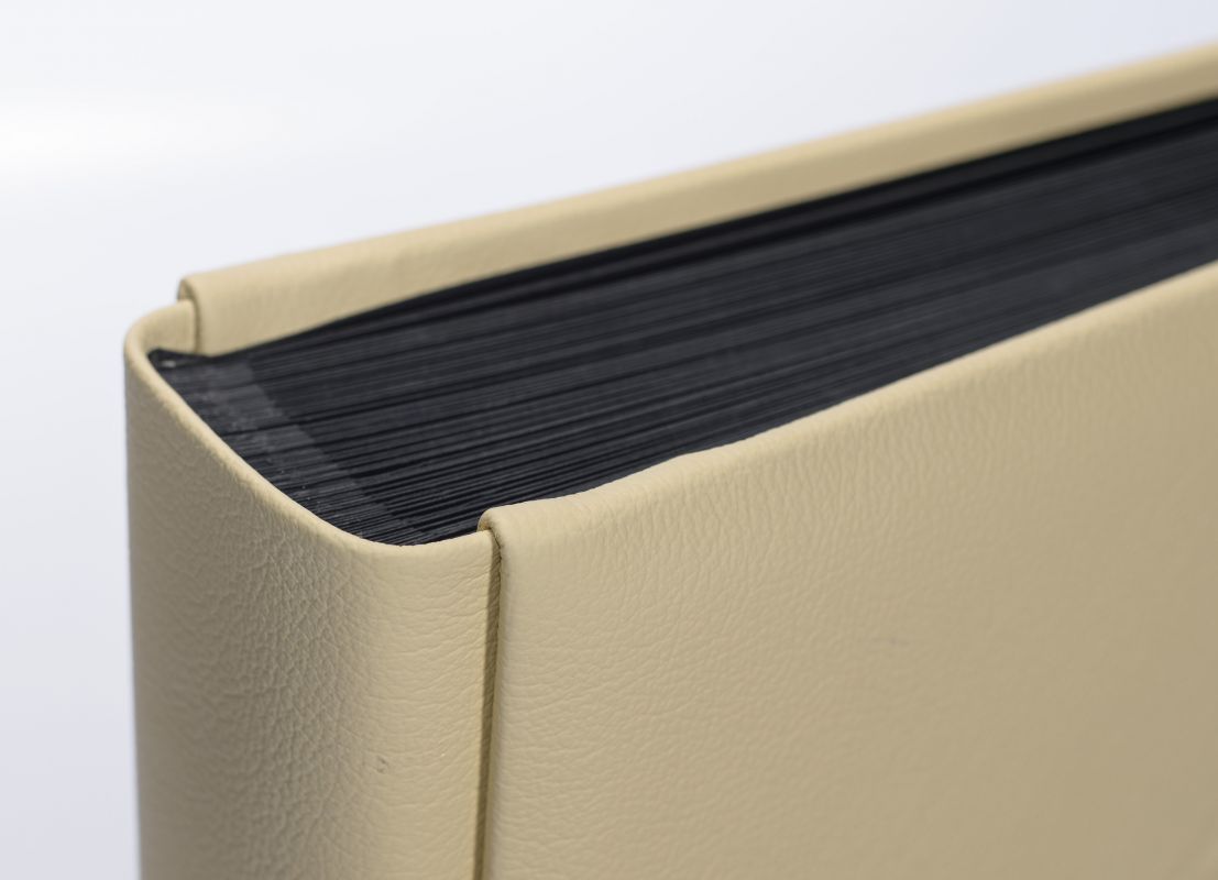 Album wykonany ze skóry naturalnej przez włoskich introligatorów. Oprawa w kolorze kremowym zdobiona charakterystycznym ornamentem. Widoczna jest wyraźnie faktura skóry. Album zawiera 50 kart w kolorze czarnym przekładanych białym pergaminem.