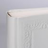 Album wykonany ze skóry naturalnej przez włoskich introligatorów. Oprawa w kolorze białym. Widoczna jest wyraźnie faktura skóry, zdobiona charakterystycznym ornamentem. Album zawiera 50 kart w kolorze białym przekładanych białym pergaminem.