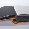 Album wykonany ze skóry naturalnej przez włoskich introligatorów. Oprawa w kolorze jasnego brązu ma  przytarcia i niejednolity kolor. Widoczna jest wyraźnie faktura skóry, zdobiona charakterystycznym ornamentem. Album zawiera 100 kart w kolorze czarnym przekładanych białym pergaminem.