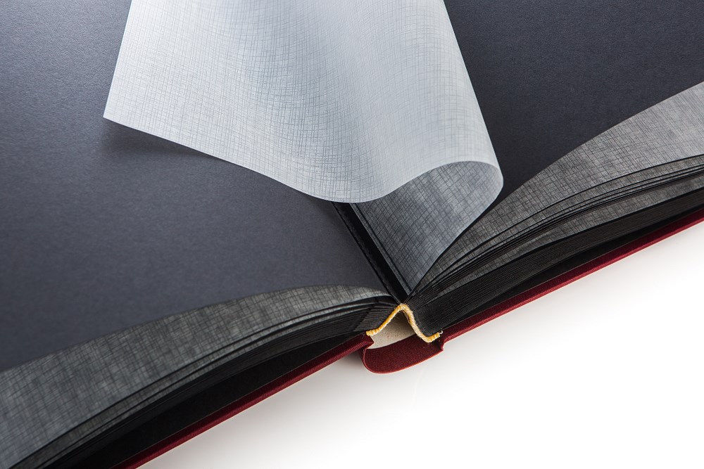 Piekna i zarazem prosta okładka oklejona płótnem oraz jej żywy i intensywny kolor to dewiza tego albumu tradycyjnego. Album ten na przedniej części okładki posiada okienko w którym można umieścić swoją fotografie.Wewnątrz znajduje się 50 kart koloru czarnego na których można wklejać zdjęcia a każda karta przekładana jest pergaminem.