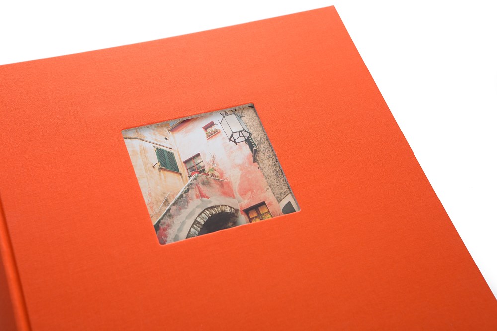 Piekna i zarazem prosta okładka oklejona płótnem oraz jej żywy i intensywny kolor to dewiza tego albumu tradycyjnego. Album ten na przedniej części okładki posiada okienko w którym można umieścić swoją fotografie.Wewnątrz znajduje się 50 kart koloru czarnego na których można wklejać zdjęcia a każda karta przekładana jest pergaminem.