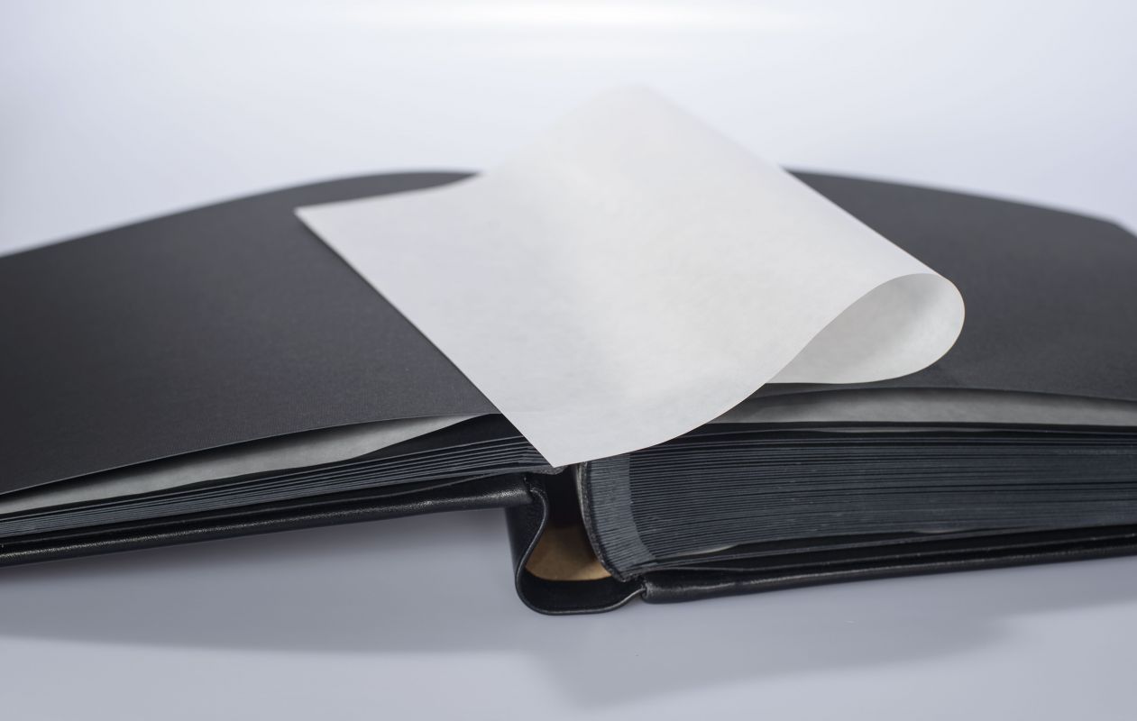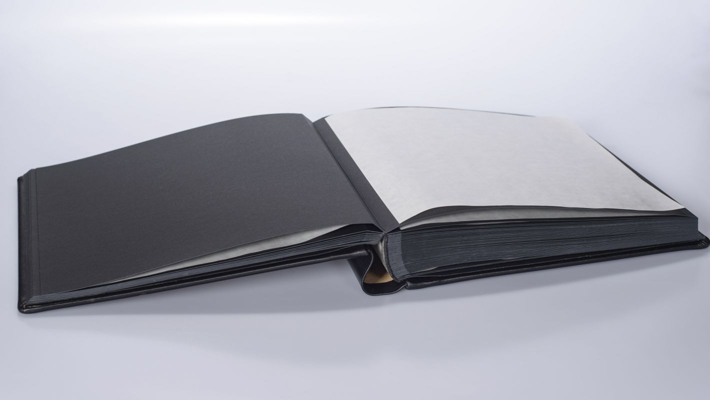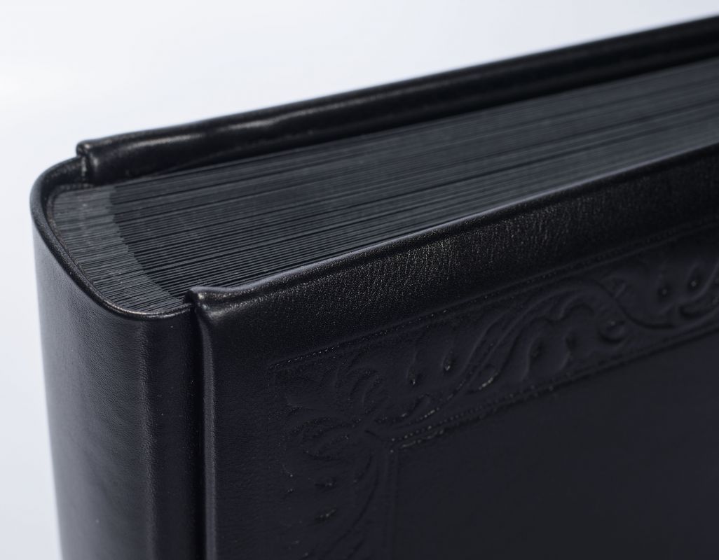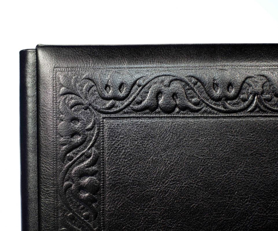 Album wykonany ze skóry naturalnej przez włoskich introligatorów. Oprawa w kolorze czarnym jest zdobiona charakterystycznym ornamentem. Widoczna jest wyraźnie faktura skóry. Album zawiera 50 kart w kolorze czarnym przekładanych białym pergaminem.