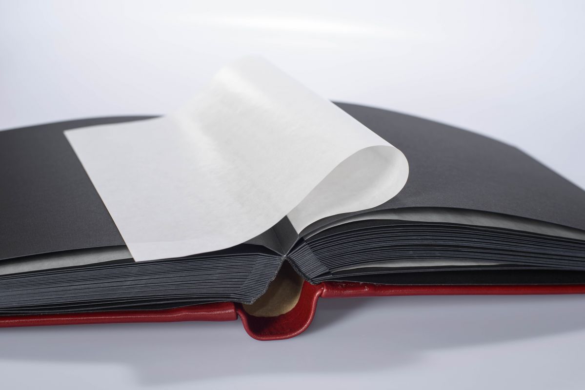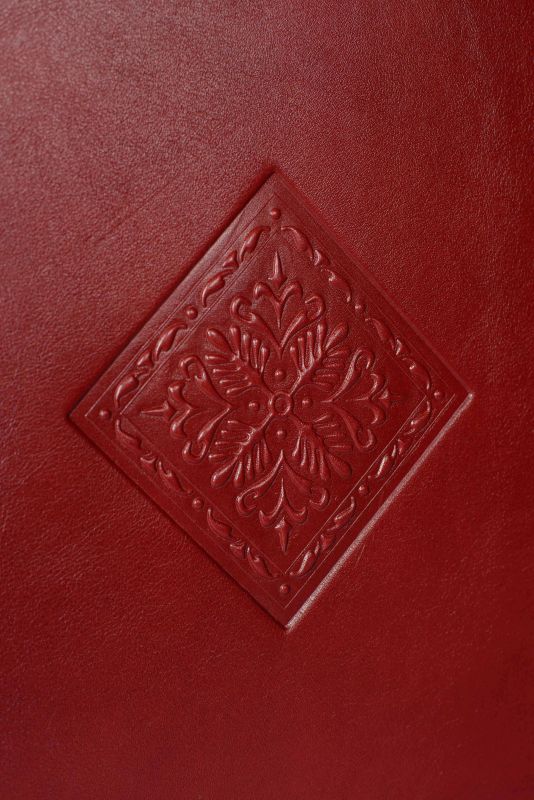 Album wykonany ze skóry naturalnej przez włoskich introligatorów. Oprawa w kolorze bordowym ma charkterystyczne przytarcia i niejednolity kolor. Widoczna jest wyraźnie faktura skóry, zdobiona charakterystycznym ornamentem. Album zawiera 50 kart w kolorze czarnym przekładanych białym pergaminem.