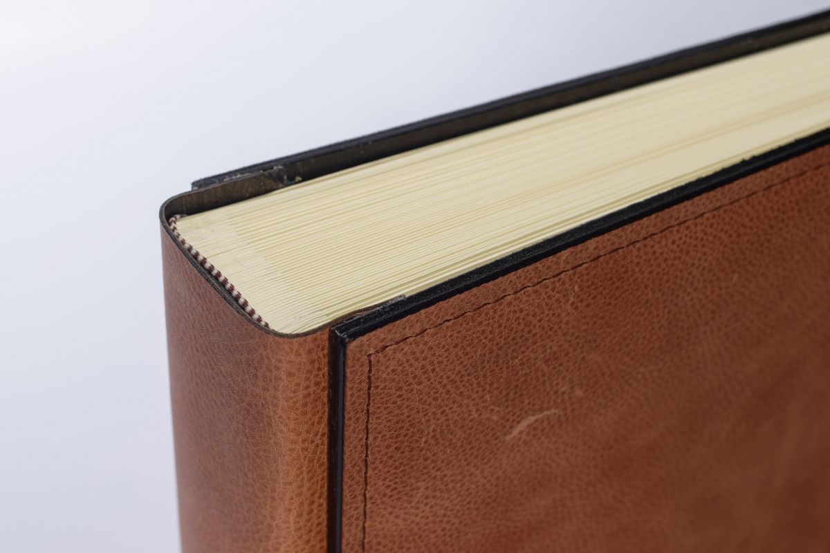 Album wykonany ze skóry naturalnej przez włoskich introligatorów. Oprawa w kolorze różu ma charkterystyczne przytarcia i niejednolity kolor. Widoczna jest wyraźnie faktura skóry. Album zawiera 50 kart w kolorze ecru przekładanych białym pergaminem.